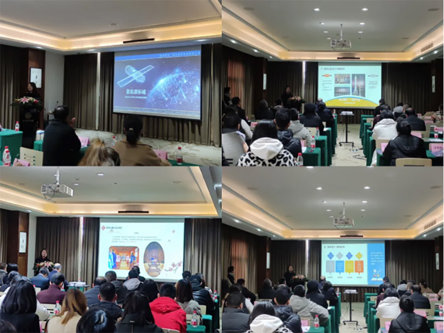会上,重庆舜天国旅总经理助理罗娜娜详细讲解了圣名游乐城、酉阳桃花源、丰都双桂山、隆平五彩田园四大研学基地的研学课程及相关政策。