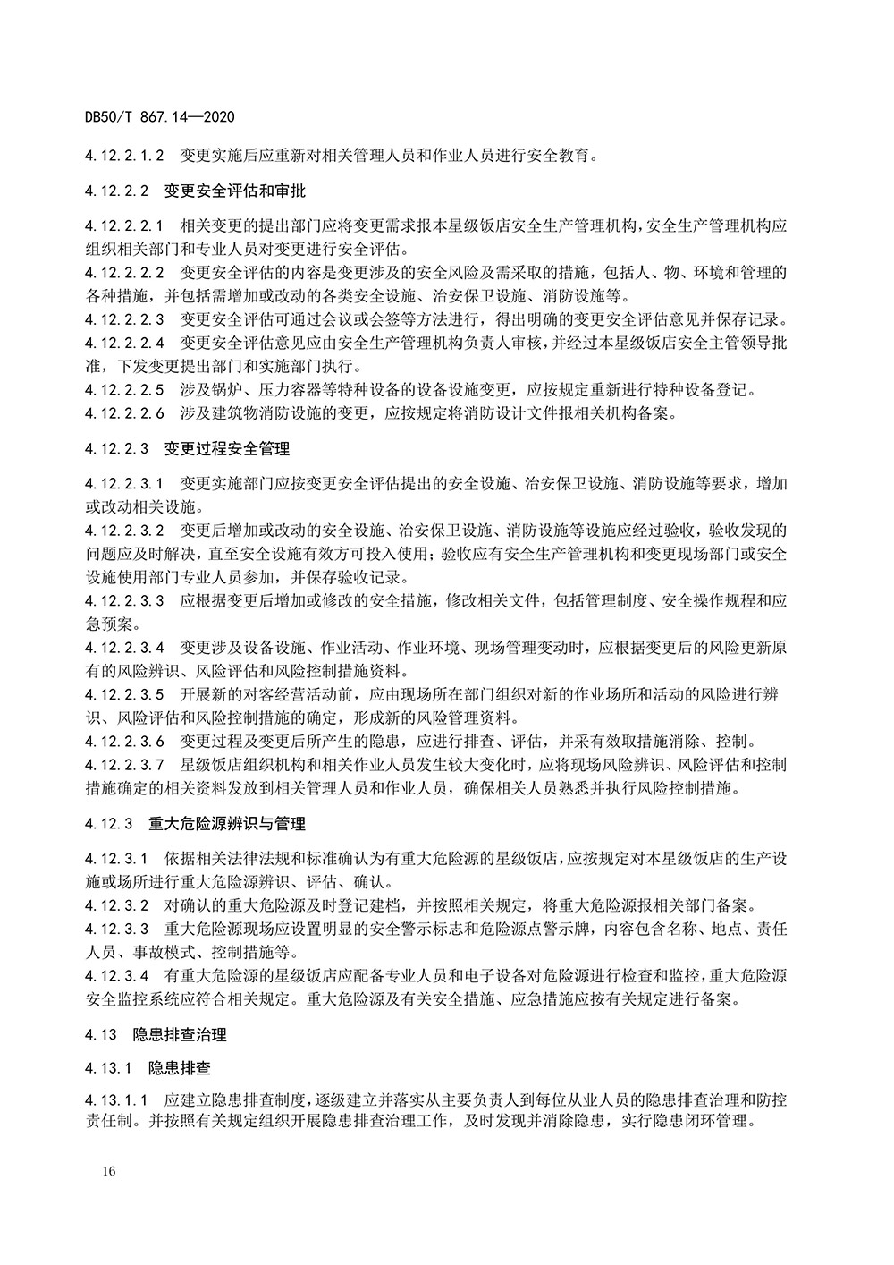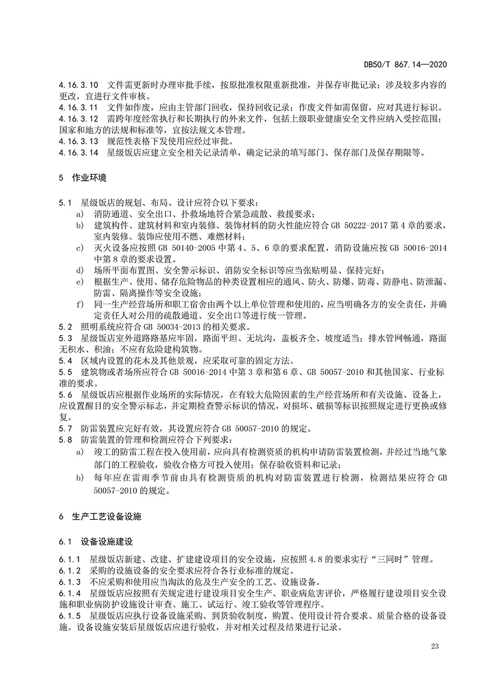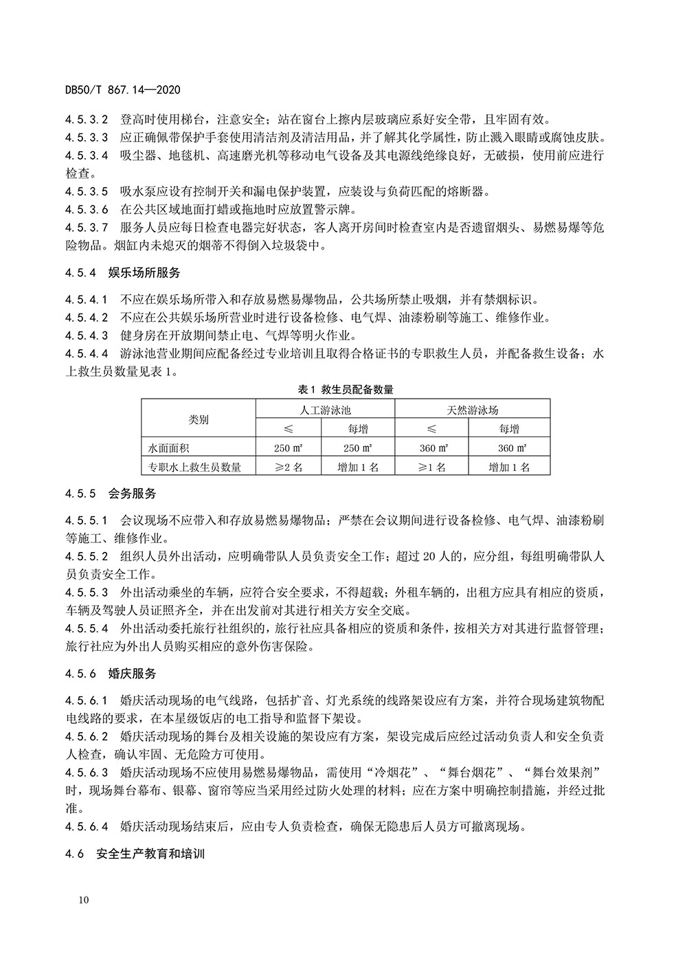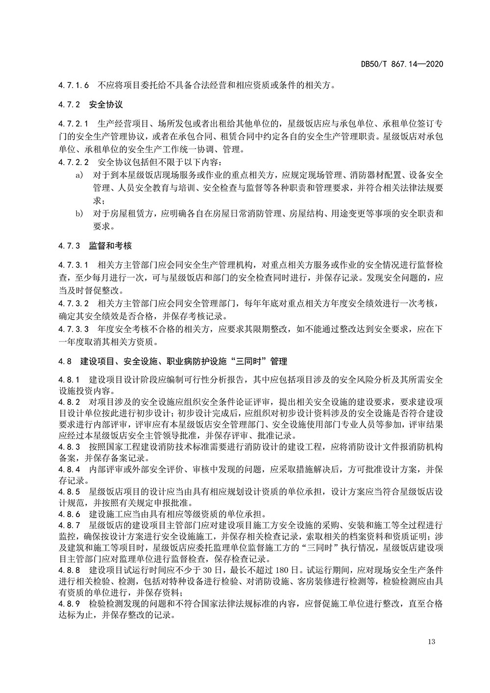 DB50_T 867.14-2020 安全生产技术规范 第14部分:星级饭店