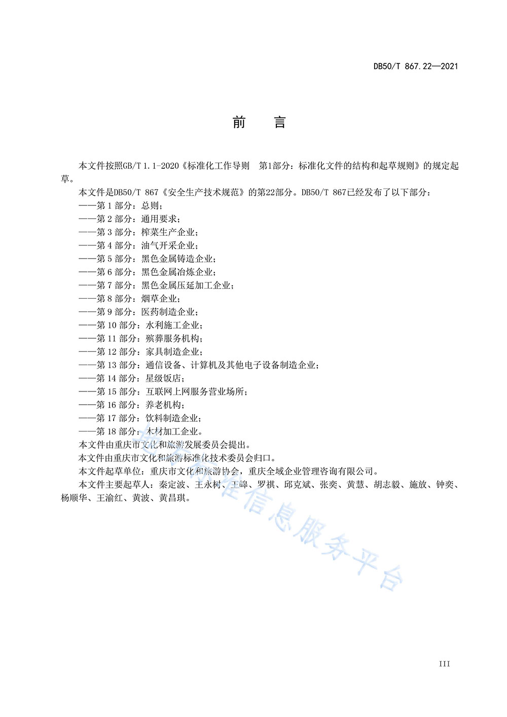 DB50_T 867.22-2021安全生产技术规范 第22部分:旅行社(标准文本)